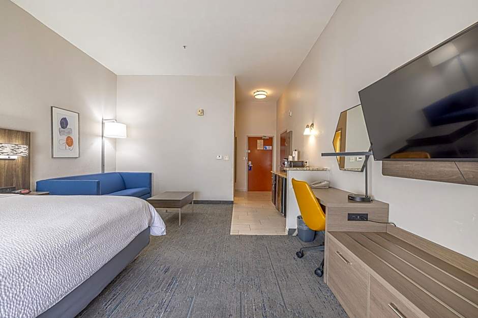 This suite features a microwave, refrigerator, and a separate living area with sofa bed.